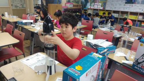 üÀ°°ü¿¡´Â üÇè ºÎ½º¸¦ ¼³Ä¡ÇÏ¿© ÇлýµéÀÌ Á÷Á¢ ´«À¸·Î º¸°í ¼ÕÀ¸·Î ¸¸Áö¸ç °úÇÐÀÇ ¿ø¸®¸¦ ±ú¿ìÄ¥ ¼ö ÀÖµµ·Ï ÁøÇàÇÏ¿´´Ù. ÇлýµéÀ» Çг⠼öÁØ¿¡ ¸ÂÃß¾î 3°³ ±ºÀ¸·Î ³ª´« µÚ, °¢°¢ 4°³ÀÇ ÇÁ·Î±×·¥À» üÇèÇß´Ù. ƯÈ÷ 1~2Çг⿡¼´Â ÆØÀÌ ¸¸µé±â, 3~4ÇгâÀº º£¸£´©ÀÌÀÇ °è´Ü, 5~6ÇгâÀº ¹°¶ó½ºÆ½¿¡ ´ëÇÑ ¹ÝÀÀÀÌ ¶ß°Å¿ü´Ù. ÀÌ·¯ÇÑ Ã¼ÇèÀ¸·Î ¿ø½É·Â°ú ¹«°ÔÁß½ÉÀÇ ¿ø¸®, ´«¿¡ º¸ÀÌÁö ¾Ê´Â °ø±â°¡ ¹°Ã¼ÀÇ ¿îµ¿¿¡ ÁÖ´Â ¿µÇâ, µû¶æÇÑ ¹°¿¡ ³ÖÀ¸¸é º¯ÇüµÇ´Â ¹°ÁúÀÇ ¼ºÁú µî Ã¥ ¼ÓÀÇ ±Û¸¸À¸·Î´Â ÀÌÇØÇϱâ Èûµç °úÇÐÀÇ ¿ø¸®¸¦ üÇèÇϸç Áñ°Ì°Ô ±ú¿ìÃÆ´Ù.