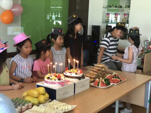 »ýÀÏ ÁÖÀΰøÀº °ø¿¹½Ã°£¿¡ ¸¸µç ¸ðÀÚ¸¦ ¾²°í ÇÑ »ç¶÷¾¿ À̸§À» ºÎ¸£¸é ¹Ú¼ö¿Í ÇÔ²² µîÀåÇÏ¿´°í, »ýÀÏ ÃàÇϳ뷡¿Í Ä£±¸, ¾ð´Ï, µ¿»ýÀÌ ¾´ ÃàÇÏ Ä«µåµµ Àü´ÞÇÏ¿´´Ù. ÇлýµéÀº ¿À·§µ¿¾È Ãß¾ïÀÌ µÉ ¼ö ÀÖ´Â ¼ÒÁßÇÑ ½Ã°£ÀÌ µÇ¾ú´Ù.