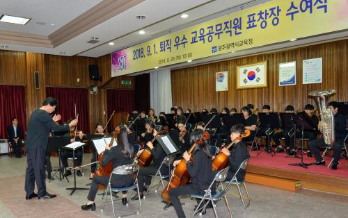 ±¤Áֽñ³À°Ã»(±³À°°¨ ÀåÈÖ±¹)ÀÌ 28ÀÏ ¿ÀÀü10½Ã ´ëȸÀǽǿ¡¼ ÅðÁ÷ ¿ì¼ö ±³À°°ø¹«Á÷¿ø°ú µ¿·á ±³Á÷¿ø µî 300¿© ¸íÀÌ Âü¼®ÇÑ °¡¿îµ¥ 2018³â 9¿ù1ÀÏÀÚ ÅðÁ÷ ¿ì¼ö ±³À°°ø¹«Á÷¿ø¿¡ ´ëÇÑ ±³À°°¨ ǥâÀåÀ» ¼ö¿©Çß´Ù.
