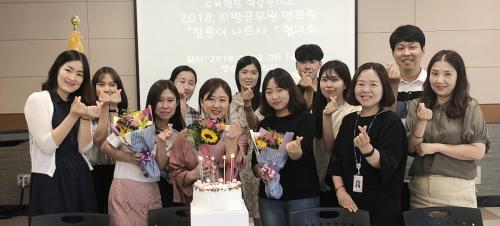 ½ÂÁøÀÚµéÀº ¼±¹è ¸àÅäµé·ÎºÎÅÍ ÃàÇÏ ÄÉÀÌÅ©¿Í ²É´Ù¹ß Àü´Þ, ±â³ä»çÁøÀ» ÃÔ¿µÇÏ¸ç ½ÂÁøÀÇ ±â»ÝÀ» ÇÔ²² ³ª´³´Ù. À̳¯ Âü¼®ÇÑ À̰æÁÖ ÁÖ¹«°üÀº ¡°°ø¹«¿ø¿¡ ÀÓ¿ëµÅ ù ½ÂÁøÀÇ ±â»ÝÀ» ¼±¹è´Ôµé°ú ³ª´² ¶æ±í¾ú´Ù.¡±¸ç, ¡°¸àÅ丵 µ¿¾Æ¸®¸¦ ÅëÇØ ½Å±Ô °ø¹«¿øÀÌ ¾ÈÁ¤ÀûÀ¸·Î Á¶Á÷¿¡ ÀûÀÀÇϰí, ¼±¹è´ÔµéÀÇ °æÇè´ã°ú ³ëÇÏ¿ì µîÀ» Àü¼ö¹Þ¾Æ Á÷Àå»ýȰÀÇ ºÎ´ã°¨ÀÌ ¸¹ÀÌ ÁÙ¾îµç °Í °°´Ù¡±°í ¸»Çß´Ù.