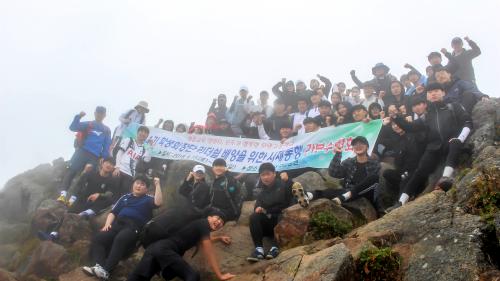 16ÀÏ¿¡´Â ÇлýȸÀå´Ü Àü¿øÀÌ ÇØ¹ß 1,910mÀÇ Áö¸®»ê õ¿ÕºÀÀ» µî¹ÝÇß´Ù. ¿ÀÀü 8½Ã¿¡ Á߻긮 ¾È³»¼Ò¸¦ Ãâ¹ßÇÏ¿© °¡ÆÄ¸¥ µ¹±æ°ú ¼¿ ¼ö ¾ø´Â °è´ÜÀ» ¿Ã¶ó 4½Ã°£¿© ¸¸¿¡ ·ÎŸ¸® ´ëÇǼҿ¡ µµÂøÇÏ¿© ÁÖ¸Ô¹ä°ú ¹ÝÂÊÀÚ¸® ¿ÀÀ̸¦ ¼ø½Ä°£¿¡ ¸Ô¾î Ä¡¿ì°í Àá½ÃÀÇ ÈÞ½ÄÀ» °¡Áø ÈÄ Ãµ¿ÕºÀ µîÁ¤±æ¿¡ ¿Ã¶ú´Ù. °¡ÆÄ¸¥ µî¹Ý±æÀ» ³², ¿©Çлý ±¸ºÐ ¾øÀÌ Àγ»¿Í ±Ø±â¸¦ ÅëÇØ 2½Ã°£¿©¸¸ ÀÎ ¿ÀÈÄ 2½Ã¿¡ ¸ðµÎ°¡ Á¤»ó¿¡ µµÂøÇÏ¿´´Ù.