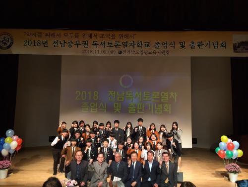 ¿µ±¤±³À°Áö¿øÃ»(±³À°Àå ±èÁؼ®)ÀÌ ¿î¿µÇÏ´Â 2018³â Àü³² ÁßºÎ±Ç µ¶¼Åä·Ð¿Â÷Çб³°¡ 7°³¿ùÀÇ ´ëÀåÁ¤À» ¸¶Ä¡°í 11¿ù 2ÀÏ ¿µ±¤¿¹¼úÀÇ Àü´ç ¼Ò°ø¿¬Àå¿¡¼ Á¹¾÷½Ä°ú ÃâÆÇ±â³äȸ¸¦ °¡Á³´Ù.