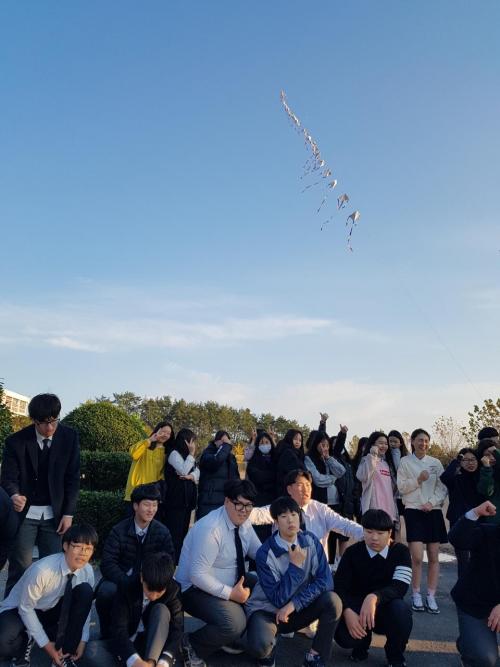 ¿¬À» ¸¸µç ÈÄ ¸ðµÎ°¡ ¿îµ¿Àå¿¡ ¸ð¿© ¡®¼ö´É ´ë¹Ú¡¯°ú ¡®¼Ò¿ø ¼ºÃ롯¸¦ ¿°¿øÇÏ¸ç ¿¬À» ÀÌ¾î ºÙ¿© ¹Ù¶÷¿¡ ³¯·Á º¸³Â´Ù. ÇлýµéÀÌ ¸¸µç ¿¬µéÀÌ Çϳª°¡ µÇ¾î ¹Ù¶÷À» °¡¸£´Â ¸ð½ÀÀ» º¸¸ç ¿ì¸® ¸ðµÎ°¡ ÇÔ²²ÇÏ´Â ¡®°í±Ý °øµ¿Ã¼¡¯ÀÓÀ» ´À³¥ ¼ö ÀÖ¾ú´Ù.