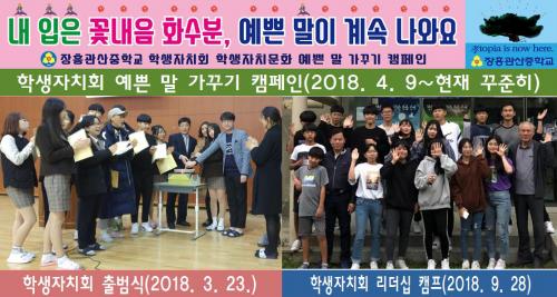 ÀåÈï°ü»êÁßÇб³ ¿ì¼ö»ç·Ê´Â ¡®ÀåÈï°ü»êÁß 10´ë ÇлýÀÚġȰµ¿¡¯À̶ó°í ºÒ¸°´Ù. ±× ù°´Â, ÇлýÀÚġȸ°¡ ¸¸µé¾î³½ ¡®Çб³Çå¹ý¡¯ÀÌ´Ù. ´ÙÀ½À¸·Î, ÇлýÀÚġȸÀÇ °í¿î ¸» ¿¹»Û °¡²Ù±â Ä·ÆäÀÎÀ¸·Î, ¡®³» ÀÔÀº ²É³»À½ ȼöºÐ, ¿¹»Û ¸»ÀÌ °è¼Ó ³ª¿Í¿ä UCC¡¯ÀÌ´Ù. ¶ÇÇÑ, SNS ÆäÀ̽ººÏ ¿î¿µ, QRÄÚµå ½Å¹® Á¦ÀÛ, È¿ÀÚ¼Û µµ½¼Æ® Ȱµ¿, ¿ù ¼ÒÅë ÇÁ·Î±×·¥, ¿ù °¨»ç¿±¼ ¾²±â, ±¹ÇâÁö±³ ½Ã°£ ¿î¿µ, °¨»ç¿±¼¸¦ ¼¼¸ç ½ÃÀÎÀÌ µÈ ÇлýÀÚġȸ, È¿ÀÚ¼Û ¼ø·Ê Ȱµ¿ µî 10°¡Áö¶ó°í ÇÑ´Ù.