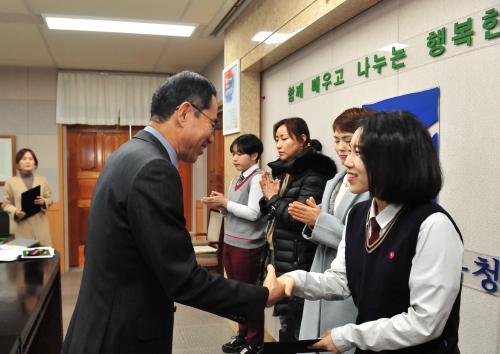 ½Ã±³À°Ã» ÃÖ¼÷ Çõ½Å±³À°°úÀåÀº ¡°¿ì¸® Áö¿ª¿¡¼ ¹®È¿¹¼ú Ȱµ¿¿¡ ÃÖ¼±À» ´ÙÇÑ ÇлýµéÀ» ¼±¹ßÇØ ÀåÇбÝÀ» Áö¿øÇÏ°í °Ý·ÁÇß´Ù¡±¸ç ¡°¾ÕÀ¸·Î ¹®È¿¹¼ú ºÐ¾ßÀÇ ¿ì¼ö Çлý°ú ¹®È¿¹¼ú Ȱµ¿¿¡ ´ëÇÑ Áö¿øÀ» °ÈÇØ ³ª°¡°Ú´Ù¡±°í ¹àÇû´Ù.