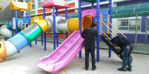 ¾î¸°ÀÌ ³îÀ̽ü³ÀÌ ÀÖ´Â ¹«¾È °ü³» Çб³´Â ÃÑ 34±³·Î Á¡°Ë ´ë»óÀº ±×³×, ¹Ì²ô·³Æ², Èçµé ³îÀ̱ⱸ, ¿À¸£´Â ±â±¸, Á¶ÇÕ³îÀÌ´ë, Ãæ°ÝÈí¼ö¿ë ¹Ù´ÚÀç µîÀ̰í, Á¡°Ë Ç׸ñÀº ¹Ù´ÚÀç ±»¾îÁü¡¤ÆÐÀÓ, ±¸Á¶¹°ÀÇ º¯Çü, ¾ÈÀü¼öÄ¢ Ç¥½Ã, ½ÅüºÎÀ§°¡ ³¥ ¼ö ÀÖ´Â Æ´»õ µî °¢ ³îÀ̽ü³À» ºñ·ÔÇØ ºÎ´ë½Ã¼³ Àü¹ÝÀÌ Æ÷ÇԵȴÙ.