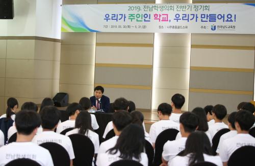 Àå¼®¿õ ±³À°°¨Àº 5¿ù 31ÀÏ ¿ÀÀü ³ªÁÖ ÁßÈï°ñµå½ºÆÄ¿¡¼ ¿¸° ¡®2019 Àü³²ÇлýÀÇȸ Àü¹Ý±â Á¤±âȸ¡¯¿¡ Âü¼®ÇØ µµ³» °íµîÇб³ Çлý ´ëÇ¥ 120¿© ¸í°ú ´ëÈ(°æÃ»¿Ã·¹)¸¦ °¡Á³´Ù.