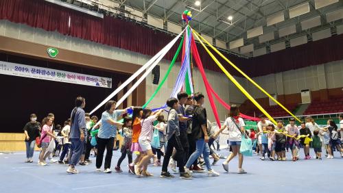 ÇÔÆò±³À°Áö¿øÃ» ±è°æÈ¯ ÀåÇлçÀÇ »çȸ·Î ÁøÇàµÈ ³îÀÌ Ã¼Çè ÇѸ¶´çÀº °³È¸½Ä ÈÄ ¹®È´Ù¾ç¼º ÀÌÇØ¸¦ ÁÖÁ¦·Î ÇÏ´Â »÷µå¾ÆÆ® °ø¿¬À» ½ÃÀÛÀ¸·Î ¿ì¸®³ª¶ó ÀüÅë³îÀÌ, ¼¼°è ¿©·¯ ³ª¶ó ³îÀÌ, ¼¼°è ÀüÅë ¾Ç±âüÇè, ¼¼°èÀÇ»óüÇè, ÅÒºí·¯ ¹× ÅÂÆò¼Ò ¸¸µé±â µî 30¿©°³ÀÇ ºÎ½º¿¡¼ ´Ù¾çÇÑ Ã¼ÇèȰµ¿ ÈÄ ¸ðµÎ°¡ Âü¿©ÇÏ¿© ¿À¹æ»ö ²öÀ» Çϳª·Î ¹´Â ¡®³ó½ÉÁÙ ¿«±â¡¯ Ȱµ¿À» ¸¶Áö¸·À¸·Î Çà»ç´Â ¸¶¹«¸® µÇ¾ú´Ù.