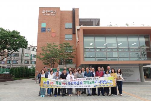 ¿¬¼ö ù³¯ ¼¿ï ¸ðµÎÀÇ Çб³¸¦ µÑ·¯º» µÚ, Çб³ °ü°èÀÚµé°ú ¿¬Âùȸ¸¦ °¡Á³´Ù. 2018³â 3¿ù ¹®À» ¿¬ ¸ðµÎÀÇ Çб³´Â ¼¿ï½ÃÀÇ Æò»ý±³À° Ç÷§Æû½Ã¼³·Î Àü ¼¼´ë¸¦ À§ÇÑ ¹è¿ò°ú ¹®ÈÀÇ °ø°£À¸·Î ÀÏ¸í ½Ã¹ÎÇб³ÀÌ´Ù. Àü¶ó³²µµ±³À°Ã»¿¡¼ Ç¥¹æÇϰí ÀÖ´Â ¸¶À»°ú Çб³°¡ ÇÔ²²ÇÑ ¸¶À»±³À°°øµ¿Ã¼ »ç¾÷À» ½Ã¹ÎÇб³¶ó´Â »õ·Î¿î ½Ã°¢À¸·Î Á¢±ÙÇØº¸ÀÚ´Â ÃëÁö·Î ¹æ¹®Áö°¡ ¼±Á¤µÇ¾ú´Ù.