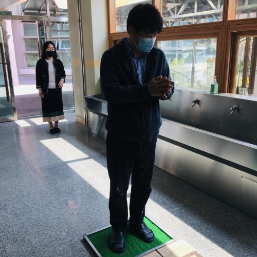 ¿Â¶óÀÎ °³ÇÐÀÌÁö¸¸ ¸ðµç ±³Á÷¿øµéÀÌ Ãâ±ÙÇÏ¿© ÀÚ½ÅÀÇ ¾÷¹«¿¡ ÃÖ¼±À» ´ÙÇÏ´Â ¸ð½À¿¡´Â ÀÌÀü°ú ´Ù¸£Áö ¾ÊÀ¸³ª ±Þ½Ä½ÇÀÇ Ç³°æÀº ¸Å¿ì ´Þ¶óÁ³´Ù. Çлý ¹× ±³Á÷¿øÀº ¸¶½ºÅ©¸¦ Âø¿ëÇÑ Ã¤ ±Þ½Ä½Ç ÀÔ±¸¿¡¼ ¼Õ ¼Òµ¶Á¦¿Í ¹ßÆÇ ¼Òµ¶À» ÅëÇØ °³ÀÎ À§»ýÀ» öÀúÈ÷ Çϰí ÀÏ·Ä·Î ¾ÉµÇ °£°ÝÀ» À¯ÁöÇÔÀ¸·Î½á »çȸÀû °Å¸®µÎ±â¸¦ ½ÇõÇÏ´Â ¸ð½ÀÀ» º¸¿´´Ù.