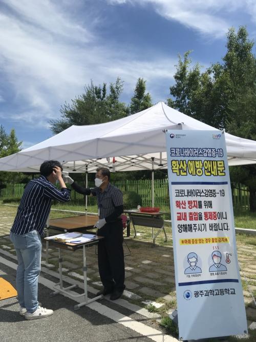 ±¤ÁÖ°úÇÐ°í°¡ Äڷγª 19 °¨¿° È®»ê ¹æÁö¸¦ À§ÇØ Çб³ Á¤¹®¿¡¼ ¹ß¿ üũ¸¦ ºóÆ´¾øÀÌ ½Ç½ÃÇϰí ÀÖ´Ù.