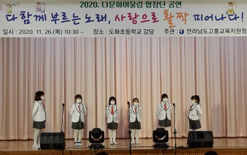 ´Ù¹®È ¾î¿ï¸² ÇÕâ´ÜÀº °íÈﵿÃÊ, Æ÷µÎÃÊ, µµÈÃÊ, °ú¿ªÃÊ 4°³ Çб³ ´Ù¹®È‧ºñ´Ù¹®È ÇлýÀ» ´ë»óÀ¸·Î ¿î¿µÇϰí ÀÖ´Ù. Çб³º° ÁÖ 2ȸ ²ÙÁØÇÑ ¿¬½ÀÀ» ÅëÇØ ÈÀ½À» ¸ÂÃß¾î °¡°í ÀÖÀ¸³ª ¿ÃÇØ Äڷγª19·Î ÀÎÇÏ¿© 4°³ Çб³ ÇÕµ¿ ¿¬½ÀÀÌ ºÒ°¡´ÉÇß°í, ´ë¸é °ø¿¬ÀÌ ¾î·Á¿öÁö¸é¼, ½Ç·ÂÀ» ¹«´ë¿¡ ¼± º¸ÀÏ ¼ö ¾ø¾ú´Ù. ÀÌ¿¡ °íÈï±³À°Áö¿øÃ»¿¡¼´Â À¯Æ©ºê ¶óÀÌºê ¹æ¼ÛÀ» ÅëÇØ µµÈÃÊ ¾î¿ï¸² ÇÕâ´ÜÀÇ ¹«´ë¸¦ °íÈﱺ¹Î°ú ÇÔ²² °øÀ¯ÇÒ ¼ö ÀÖµµ·Ï ÇÏ¿´´Ù.