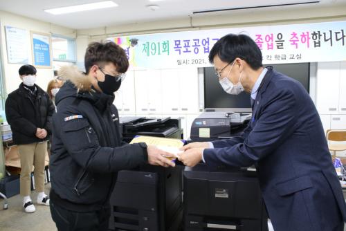 ±³¹«½Ç¿¡¼ Ãѵ¿¹®È¸Àå(±èÇü¼®)Àº Åä¸ñ°ú ½É±Ô¹Î ¿Ü 5¸í¿¡°Ô(±èÁöȯ(°ÇÃà°ú) ÀÌŹÎ(Á¶¼±±â°Ô°ú) ±è½Â¿î(±â°è°ú), À̰æÃ¶(Àü±â°ú, ±è¼öºó(Ȱø°ú))¿¡°Ô °¢ °¢ 10¸¸¿øÀÇ ÀåÇбÝÀ» Àü´ÞÇÏ¿© ´õ¿í ÈÆÈÆÇÑ Á¹¾÷½ÄÀÌ µÇ°Ô Çß´Ù. ÀåÇбÝÀ» Àü´Þ ¹ÞÀº Åä¸ñ°ú ½É±Ô¹Î ÇлýÀº ¡°Áñ°Å¿î Á¹¾÷½Ä¿¡¼ Ãѵ¿¹®È¸Àå´ÔÀ¸·ÎºÎÅÍ ÀåÇбݱîÁö ¹Þ°Ô µÇ¾î ¹«Áö ±â»Þ´Ï´Ù. Çб³¸¦ ¶°³ª´õ¶óµµ ¸ñÆ÷°ø°íÀÎÀÓÀ» ÀØÁö ¾Ê°í Á¦°¡ Ãë¾÷ÇÑ °÷¿¡¼ ÃÖ¼±À» ´ÙÇÏ¿© 4Â÷ Çõ¸íÀ» ÁÖµµÇÒ Ã¢ÀÇ• À¶ÇÕÇü ±â¼ú¸íÀåÀÌ µÇ°Ú´Ù.¡±´Â ´ÙÁüÀ» µå·¯³Â´Ù.