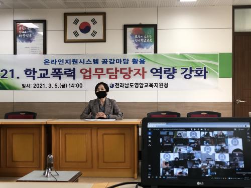 Äڷγª19 °¨¿°º´ È®»êÀ» ¹æÁöÇϰíÀÚ Àü¶ó³²µµ±³À°Ã» ¿µ»óȸÀǽýºÅÛ ¶óÀÌºê ¹æ¼ÛÀ¸·Î ÁøÇàµÇ¾ú´Ù. À̹ø ¿¬¼ö´Â °³Á¤ Çб³Æø·Â¿¹¹æ¹ý, Çб³Æø·Â »ç¾Èó¸® º¯°æ»çÇ×, Çб³Æø·Â »ç¾Èó¸® ¿Â¶óÀÎÁö¿ø½Ã½ºÅÛ ¡®°ø°¨¸¶´ç¡¯ÀÇ È°¿ë, ½Ç½Ã°£ Q&A ½Ã°£À¸·Î ±¸¼ºÇß´Ù.