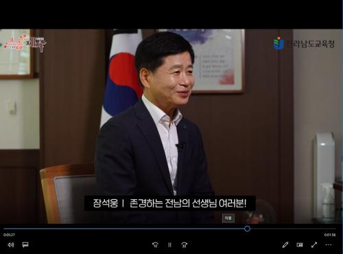 Àå¼®¿õ ±³À°°¨Àº À̳¯ Àü¶ó³²µµ±³À°Ã»ÀÌ Á¦ÀÛÇØ ȨÆäÀÌÁö¿Í À¯Æ®ºê ä³Î(Àü³²±³À°TV) µî¿¡ ¿Ã¸° ½º½ÂÀÇ ³¯ ÃàÇÏ¿µ»ó¿¡ Ãâ¿¬ÇØ ¡°Á¦40ȸ ½º½ÂÀÇ ³¯À» ¸Â¾Æ Àü³²ÀÇ ¸ðµç ¼±»ý´Ôµé²² ±íÀº Á¸°æ°ú °¨»çÀÇ ¸¶À½À» ÀüÇÑ´Ù.¡±°í ¸»Çß´Ù.
