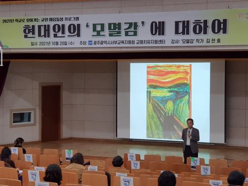 ±¤ÁÖ¼ºÎ±³À°Áö¿øÃ»Àº Ư° °»ç·Î µµ¼ ¡®¸ð¸ê°¨¡¯ÀÇ ÀúÀÚÀ̱⵵ ÇÑ ¼º°øÈ¸´ë ±èÂùÈ£ ±³¼ö¸¦ ÃÊûÇß´Ù. ±è ±³¼ö´Â Ư°¿¡¼ ¡®°¨Á¤¡¯À» °³ÀÎÀû Â÷¿øÀ» ³Ñ¾î »çȸ ¹®ÈÀû ¸Æ¶ôÀ¸·Î Á¢±ÙÇÏ¸ç ¡®¸ð¸ê°¨¡¯À» Á¶¸íÇß´Ù. ¶Ç ¡®¸ð¸ê°¨¡¯ ±Øº¹ ¹× ½º½º·Î ǰÀ§¸¦ Áöų ¼ö ÀÖ´Â ¹æ¾È¿¡ ´ëÇØ »ìÆìºÃ°í, ¡®°¨Á¤¡¯ÀÇ ÁÖÀÎÀÌ µÇ±â À§ÇÑ ³ë·Â¿¡ ´ëÇØ¼µµ À̾߱âÇß´Ù.