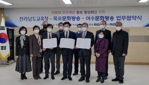 Àü¶ó³²µµ±³À°Ã»(±³À°°¨ Àå¼®¿õ)°ú ¸ñÆ÷MBC(´ëÇ¥ÀÌ»ç À̼ø¿ë), ¿©¼öMBC(´ëÇ¥ÀÌ»ç ÀÌÈ£ÀÎ)°¡ 9ÀÏ(¼ö) Àü¶ó³²µµ±¹Á¦±³À°¿ø È­»óȸÀǽǿ¡¼­ ´Ù¹®È­ Àνݳ¼± È«º¸ Ȱ¼ºÈ­¸¦ À§ÇÑ ¾÷¹«Çù¾à(MOU)À» ü°áÇß´Ù.
