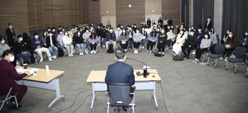 ¸ñÆ÷´ë »ç¹ü´ë¿¡ ÀçÇÐÁßÀÎ 20´ë ¿¹ºñ±³»çµéÀº Àü³²±³À°Ã»ÀÇ ±³»çÀÓ¿ë °èȹºÎÅÍ ¹Ì·¡ÀÇ ±³»ç°¡ °®Ãß¾î¾ß ÇÒ ¿ª·® µî¿¡ ´ëÇØ ´Ù¾çÇÑ Áú¹®À» Çß°í, Àå ±³À°°¨Àº ÇöÀå ±³»ç·Î¼ »ì¾Æ¿Â °æÇè°ú ±³À°Ã¶ÇÐ, Àü³²±³À° ¹æÇâÀ» ´ã´ãÇÏ°Ô ´äº¯Çß´Ù. ¶ÇÇÑ, Àü³²Áö¿ª ÀÛÀºÇб³ÀÇ ÀåÁ¡ ¹× ´ÜÁ¡, ±³»ç Ãæ¿ø µî¿¡ ´ëÇØ¼µµ ÀÚÀ¯·Ó°Ô ÀǰßÀ» ³ª´³´Ù.