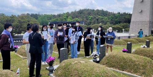 Àü³² °¢±Þ Çб³ Çлýȸ¿Í Çб³¿¬ÇÕȸ ȸ¿øµéÀº ±¹¸³ 5¡¤18¹ÎÁÖ¹¦Áö¸¦ ã¾Æ Âü¹è¿Í ÇåÈ·Î 5¡¤18 Á¤½ÅÀ» µÇ»õ°å°í, Ã߸ð Çö¼ö¸·À» Çб³ Á¤¹®¿¡ °Ô¾çÇß´Ù.
