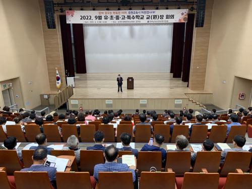 Àü¶ó³²µµ¼øÃµ±³À°Áö¿øÃ»(±³À°Àå ÀÓÁ¾À±)Àº 9¿ù 6ÀÏ(È) ¿ÀÈÄ 2½Ã ¼øÃµ¸¸»ýŹ®È±³À°¿ø °ø¿¬Àå¿¡¼ °ü³» À¯․ÃÊ․Áß․°í․Ư¼öÇб³ ±³(¿ø)Àå 84¸íÀ» ´ë»óÀ¸·Î 2022Çг⵵ 9¿ù ±³(¿ø)Àå ȸÀǸ¦ °³ÃÖÇß´Ù.