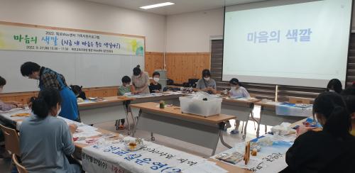 ¸ñÆ÷±³À°Áö¿øÃ»(±³À°Àå Á¤´ë¼º) Wee¼¾ÅÍ¿¡¼´Â 9¿ù 27ÀÏ °ü³» ÃʵîÇб³ Çлý°ú Çкθð·Î ±¸¼ºµÈ 10°¡Á¤(20¸í)À» ´ë»óÀ¸·Î ŸÀϰø¿¹ÇÁ·Î±×·¥ ¡°¸¶À½ÀÇ »ö±ò¡±À» ÁøÇàÇß´Ù.