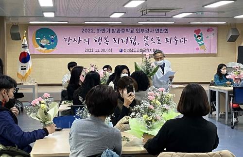 Àü¶ó³²µµ°íÈï±³À°Áö¿øÃ»(±³À°Àå ¹Ú°æÈñ)Àº 11¿ù 30ÀÏ ´ëȸÀǽÇ(3Ãþ)¿¡¼­ ¹æ°úÈÄÇб³ ¿ÜºÎ°­»ç ¹× ¼øÈ¸°­»ç 80¿©¸íÀ» ´ë»óÀ¸·Î ¿ø¿¹ Ä¡À¯¼ö¾÷ ¹× ¿ø¿¹ Å×¶óÇÇ(üÇèȰµ¿) Èú¸µ ¿¬Âùȸ¸¦ ½Ç½ÃÇß´Ù.