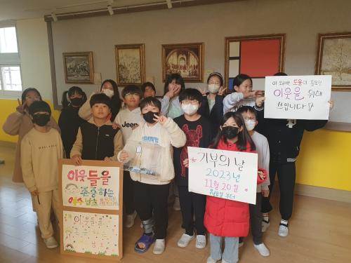 ±¹µ¿ Áֹμ¾ÅÍ µ¿ÀåÀº ¡°ÇлýµéÀÇ ÈûÀ¸·Î ¸ðÀº ¸ð±Ý¾×À¸·Î ¹ÞÀº À̺ÒÀº µµ¿òÀÌ ÇÊ¿äÇÑ ÀÌ¿ô¿¡°Ô Àü´ÞÇÑ´Ù¡±¸é¼ ¡°¿ì¸® ÇлýµéÀÇ ±íÀº ¶æÀ» Àß Àü´ÞÇϰڴÙ.¡±¸ç °¨»çÀÇ ¶æÀ» ÀüÇß°í, ÀÌ¿ô»ç¶û Ȱµ¿¿¡ Âü¿©ÇÑ À±¿¹¸²(6Çгâ) ÇлýȸÀåÀº ¡±Ä£±¸µé Çϳª ÇϳªÀÇ Á¤¼ºÀÌ ¸ð¿© ÀÌ·¸°Ô µµ¿òÀ» ÁÙ ¼ö ÀÖ´Â ÈûÀÌ »ý±ä´Ù´Â °ÍÀÌ ³î¶ó¿ü°í ÀÌ·± ½ÇõÀÌ º¸ÅÆÀÌ µÈ´Ù°í ÇÏ´Ï ±â»¼´Ù.¡±¶ó°í ¼Ò°¨À» ¹àÇû´Ù.