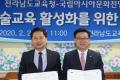Àü¶ó³²µµ±³À°Ã»(±³À°°¨ Àå¼®¿õ)ÀÌ ±¹¸³¾Æ½Ã¾Æ¹®È­Àü´ç(Àü´çÀå Á÷¹«´ë¸® ÀÌÁø½Ä)°ú ÇÔ²² âÀÇÀû ¿¹¼ú±³À° Ȱ¼ºÈ­¿Í Áö¿ª ¹®È­¡¤¿¹¼ú ÀÎÀç¾ç¼º¿¡ ³ª¼¹´Ù. Àü¶ó³²µµ±³À°Ã»Àº 20ÀÏ ¿ÀÀü µµ±³À°Ã»¿¡¼­ ±¹¸³¾Æ½Ã¾Æ¹®È­Àü´ç°ú ¾÷¹«Çù¾àÀ» ü°áÇϰí, ´Ù¾çÇÑ ¹®È­‧¿¹¼úüÇèȰµ¿À» ÅëÇØ Çб³¿¹¼ú±³À°À» È®´ëÇØ ³ª°¡±â·Î Çß´Ù. Çù¾à½Ä¿¡´Â Àå¼®¿õ ±³À°°¨À» ºñ·ÔÇÑ ¡¦